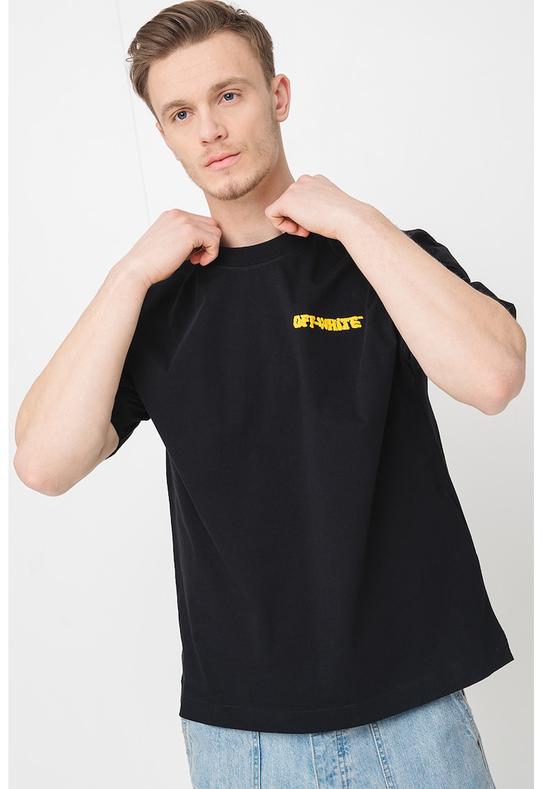 - galben Imprimeu: text Material: bumbac Croiala: regular fit Model: decolteu la baza gatului Lungime maneca: maneca scurta Compozitie Exterior: 100% bumbac Info model Modelul poarta un produs de marimea S. Marimi model: 191 cm inaltime