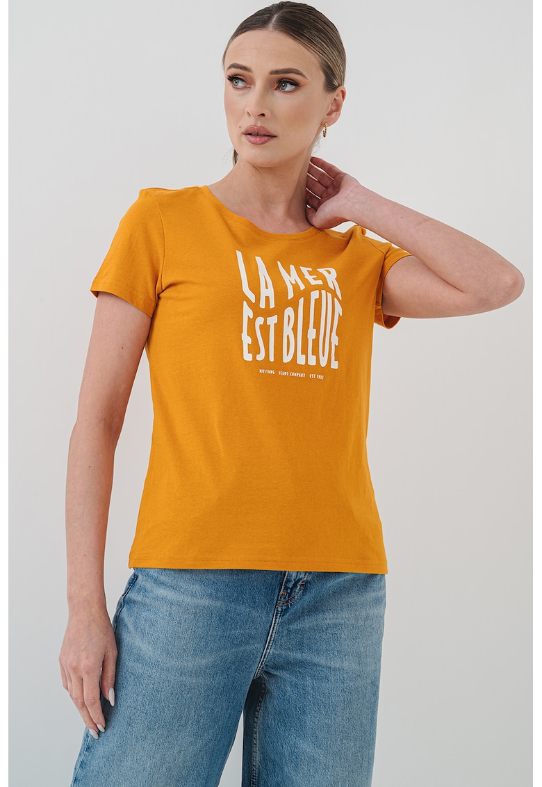 Caracteristici Culoare: maro ocru Imprimeu: text Material: bumbac Croiala: regular fit Model: rotund Lungime maneca: maneca scurta Compozitie Exterior: 100% bumbac Info model Modelul poarta un produs de marimea S. Marimi model: 174 cm inaltime