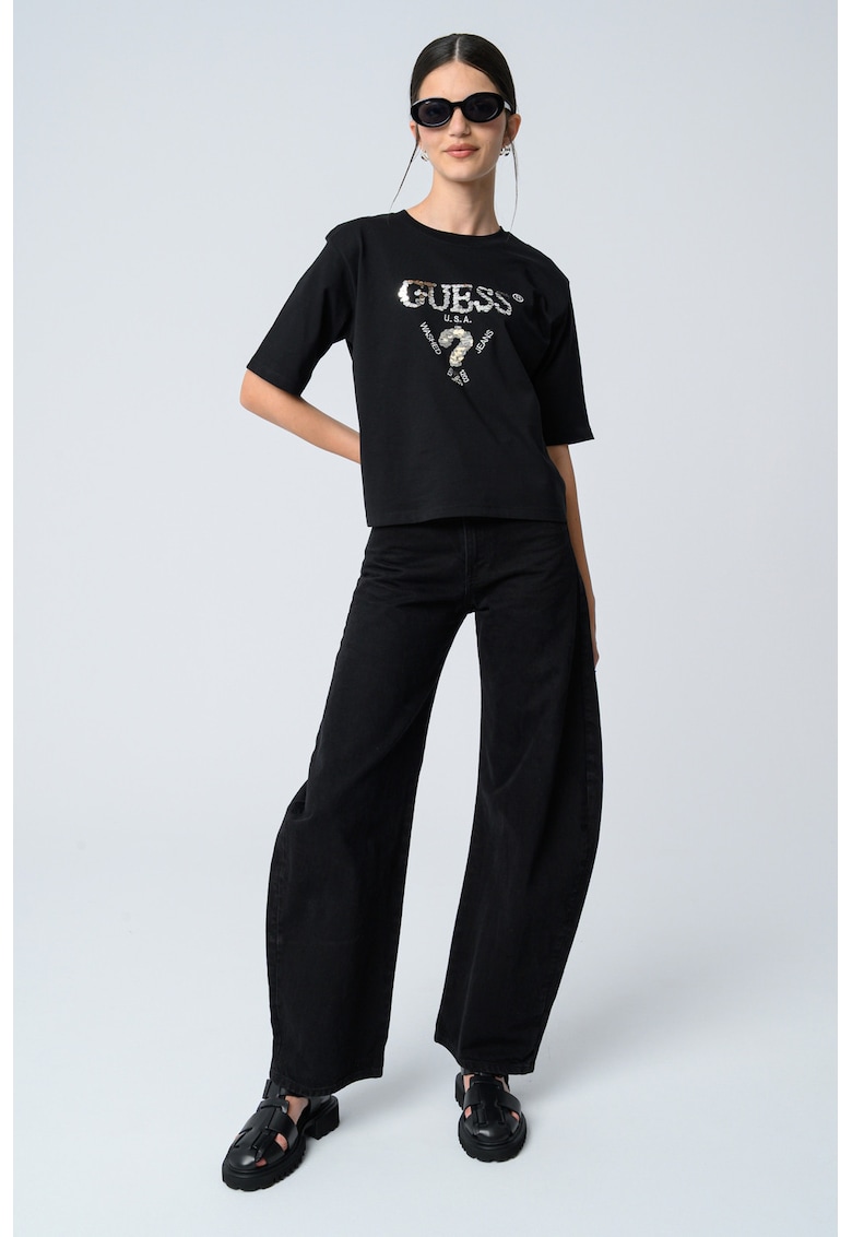 Caracteristici generale Sport: lifestyle Culoare: negru Imprimeu: logo Croiala: regular fit Stil decolteu: rotund Material: bumbac Detalii: aplicatii cu paiete Detalii material Exterior: 100% bumbac Info model Modelul poarta un produs de marimea S. Marimi model: 178 cm inaltime