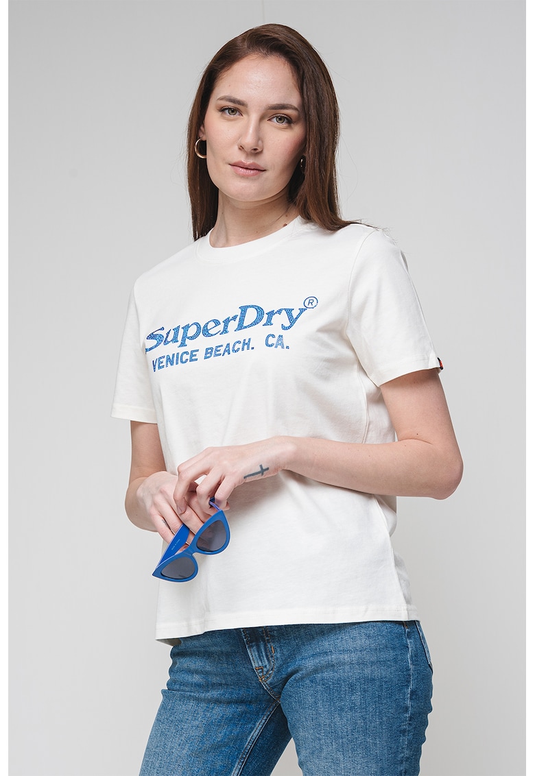 - albastru Imprimeu: logo Material: bumbac Croiala: regular fit Model: decolteu la baza gatului Lungime maneca: maneca scurta Detalii: aplicatii din strasuri Compozitie Exterior: 100% bumbac Info model Modelul poarta un produs de marimea S. Marimi model: 180 cm inaltime