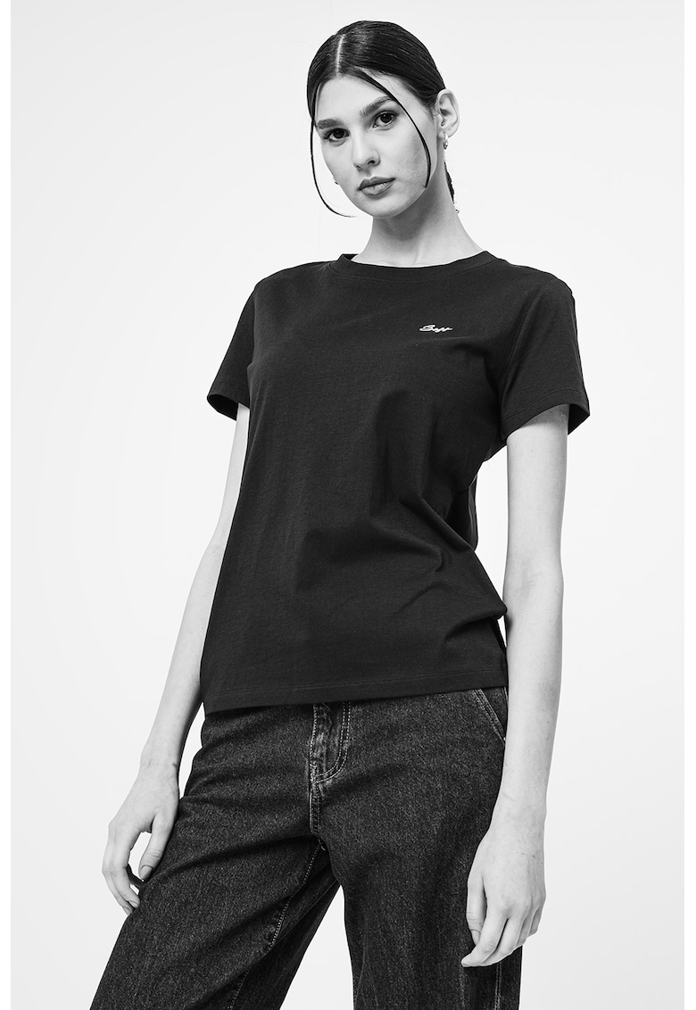 Caracteristici Culoare: bleumarin Imprimeu: uni Material: bumbac Croiala: regular fit Model: decolteu la baza gatului Lungime maneca: maneca scurta Detalii: logo mic pe piept Compozitie Exterior: 100% bumbac Info model Modelul poarta un produs de marimea S. Marimi model: 181 cm inaltime