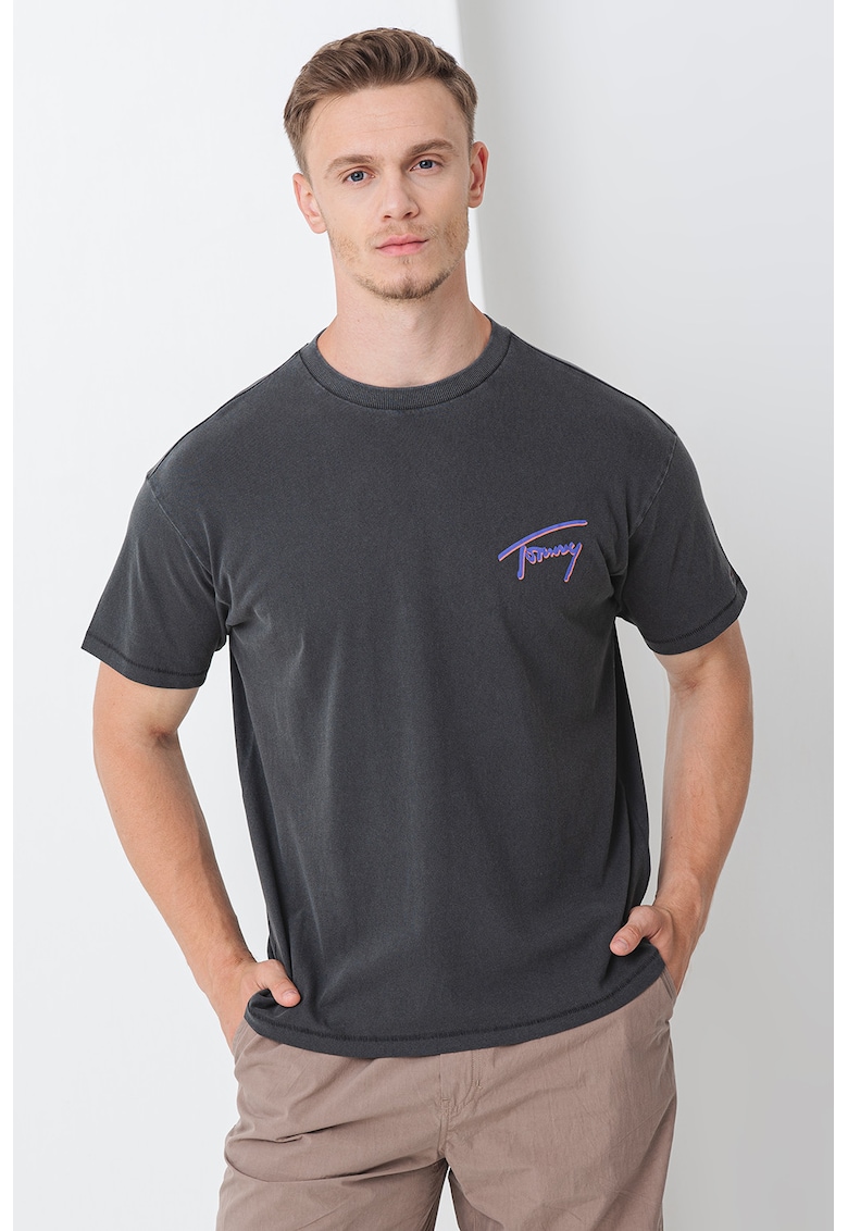 - indigo Imprimeu: logo Material: bumbac Croiala: regular fit Model: rotund Lungime maneca: maneca scurta Compozitie Exterior: 100% bumbac Info model Modelul poarta un produs de marimea M. Marimi model: 191 cm inaltime