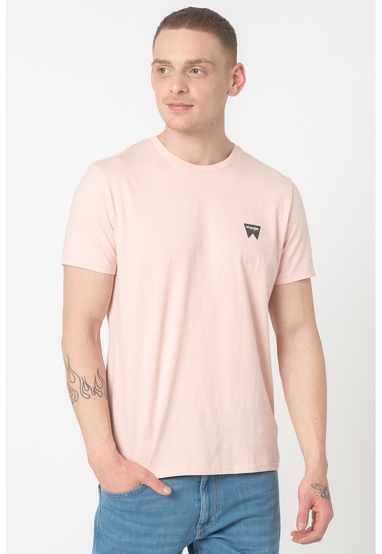 Caracteristici Culoare: roz pastel Imprimeu: uni Material: bumbac Croiala: regular fit Model: decolteu la baza gatului Lungime maneca: maneca scurta Detalii: detaliu cu logo Compozitie Exterior: 100% bumbac Info model Modelul poarta un produs de marimea M. Marimi model: 186 cm inaltime