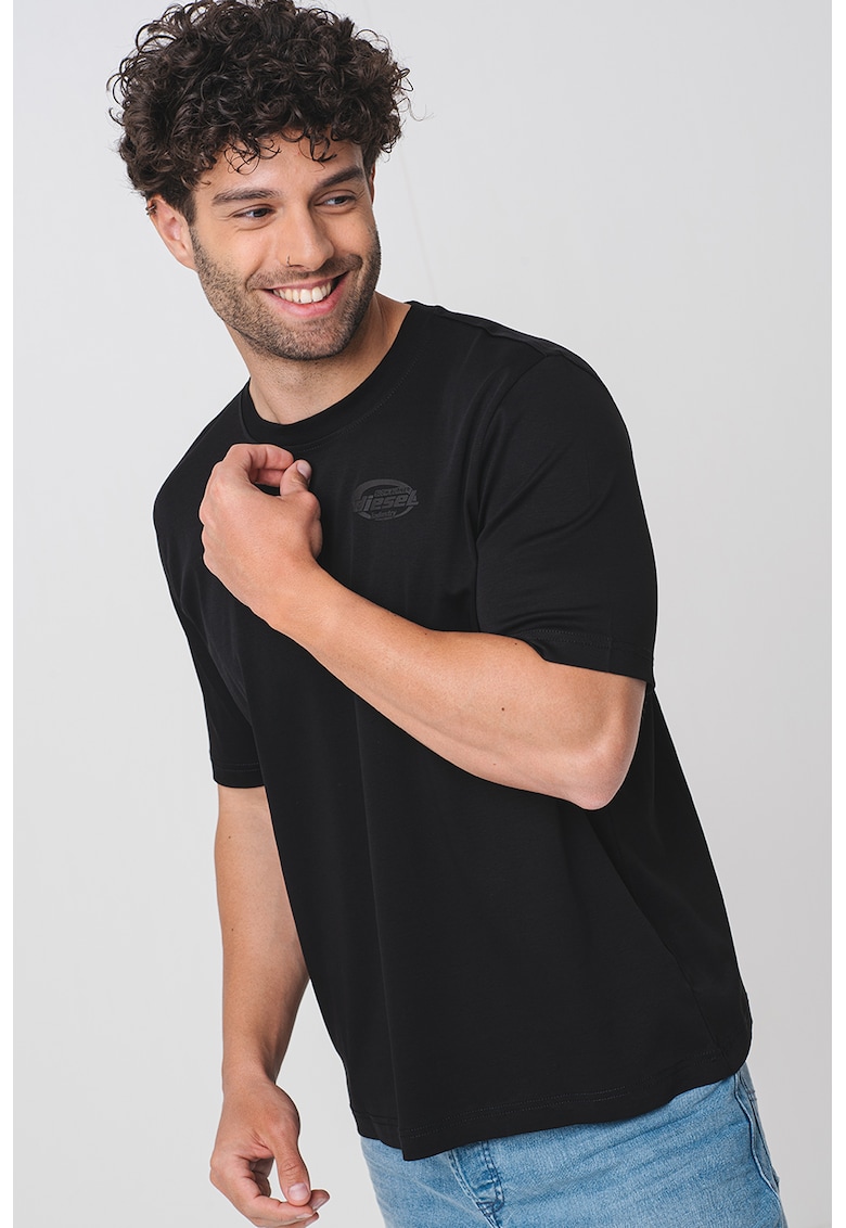 Caracteristici Culoare: negru Imprimeu: logo Material: bumbac Croiala: regular fit Model: decolteu la baza gatului Lungime maneca: maneca scurta Compozitie Exterior: 100% bumbac Info model Modelul poarta un produs de marimea M. Marimi model: 179 cm inaltime
