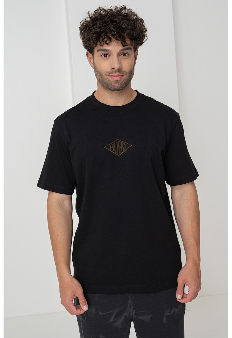 - negru Imprimeu: uni Material: bumbac Croiala: regular fit Model: decolteu la baza gatului Lungime maneca: maneca scurta Detalii: detaliu cu logo Compozitie Exterior: 100% bumbac Info model Modelul poarta un produs de marimea M. Marimi model: 179 cm inaltime