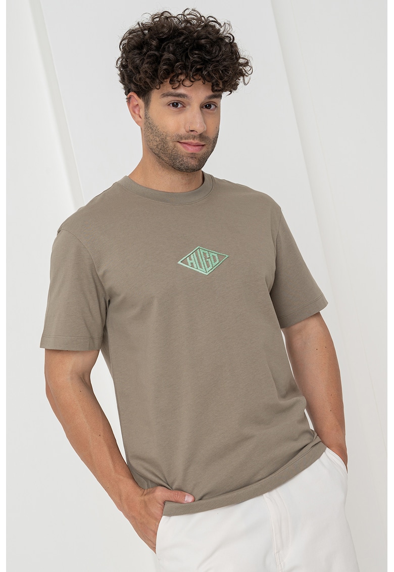 Caracteristici Culoare: kaki Imprimeu: uni Material: bumbac Croiala: regular fit Model: decolteu la baza gatului Lungime maneca: maneca scurta Detalii: detaliu cu logo Compozitie Exterior: 100% bumbac Info model Modelul poarta un produs de marimea M. Marimi model: 179 cm inaltime