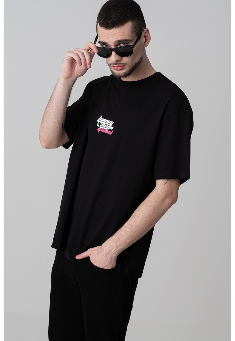 - roz Imprimeu: logo Material: bumbac Croiala: regular fit Model: decolteu la baza gatului Lungime maneca: maneca medie Compozitie Exterior: 100% bumbac Info model Modelul poarta un produs de marimea M. Marimi model: 190 cm inaltime