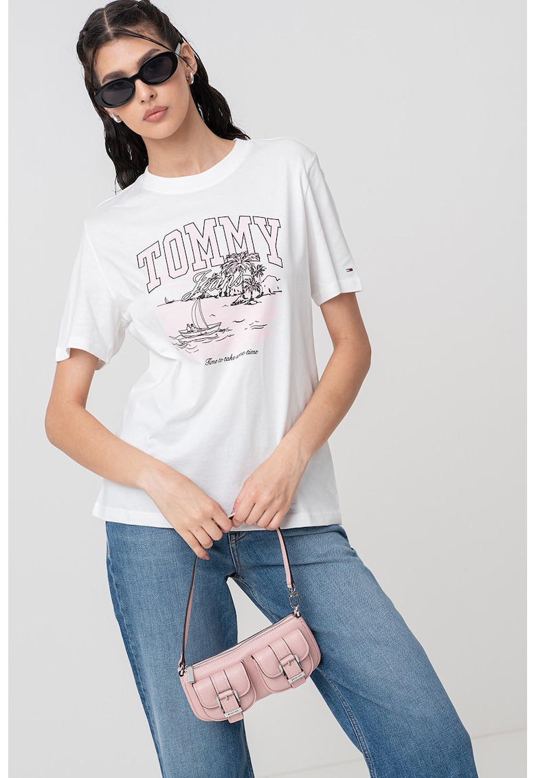 - grafic Material: bumbac Croiala: regular fit Model: decolteu la baza gatului Lungime maneca: maneca medie Compozitie Exterior: 100% bumbac regenerativ Info model Modelul poarta un produs de marimea S. Marimi model: 181 cm inaltime