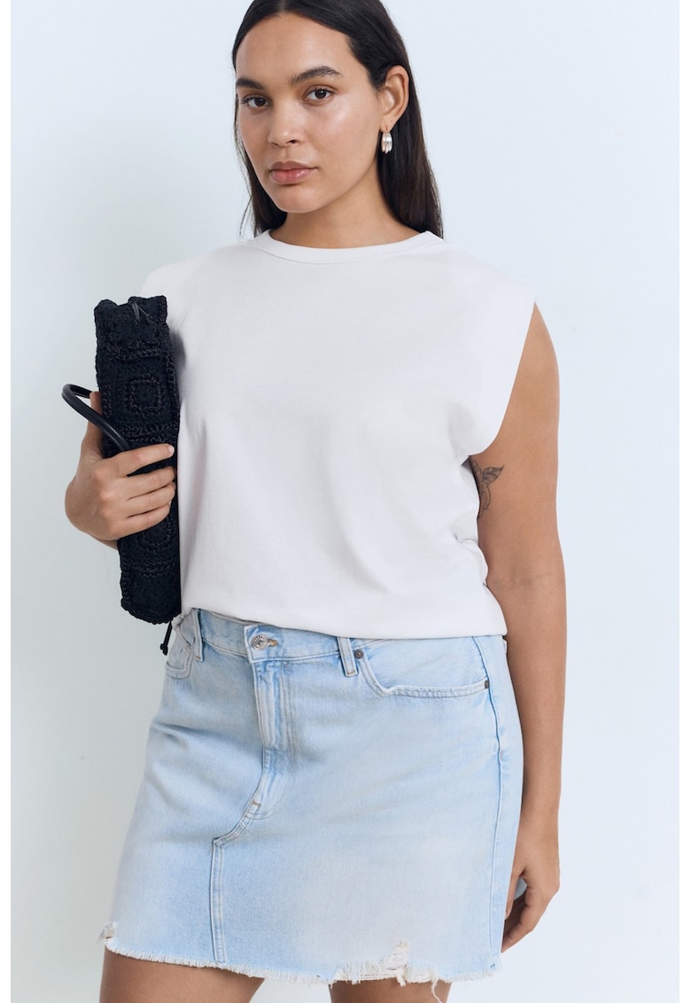 Caracteristici Culoare: alb Imprimeu: uni Material: bumbac Croiala: curvy Model: decolteu la baza gatului Maneci: tip aripioara Lungime maneca: maneca scurta Detalii: marimile 3xl
