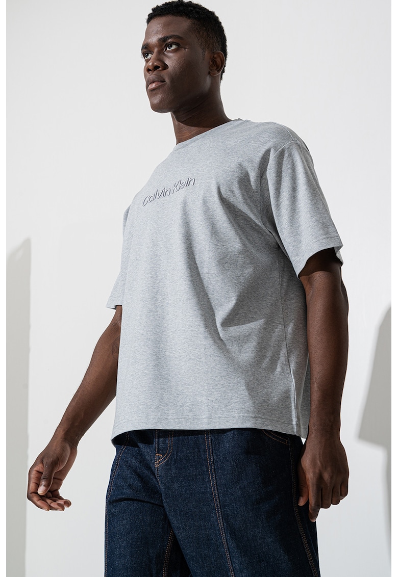 Caracteristici Culoare: gri deschis melange Imprimeu: logo Material: bumbac Croiala: regular fit Model: decolteu la baza gatului Maneci: cazute Lungime maneca: maneca scurta Compozitie Exterior: 100% bumbac Info model Modelul poarta un produs de marimea M. Marimi model: 184 cm inaltime