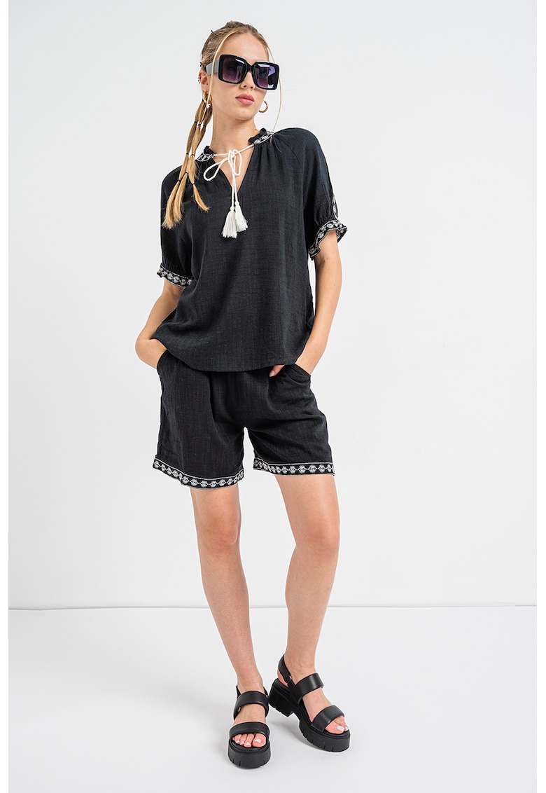 - viscoza Croiala: regular fit Model: in v Maneci: raglan Lungime maneca: maneca scurta Compozitie Exterior: 54% bumbac