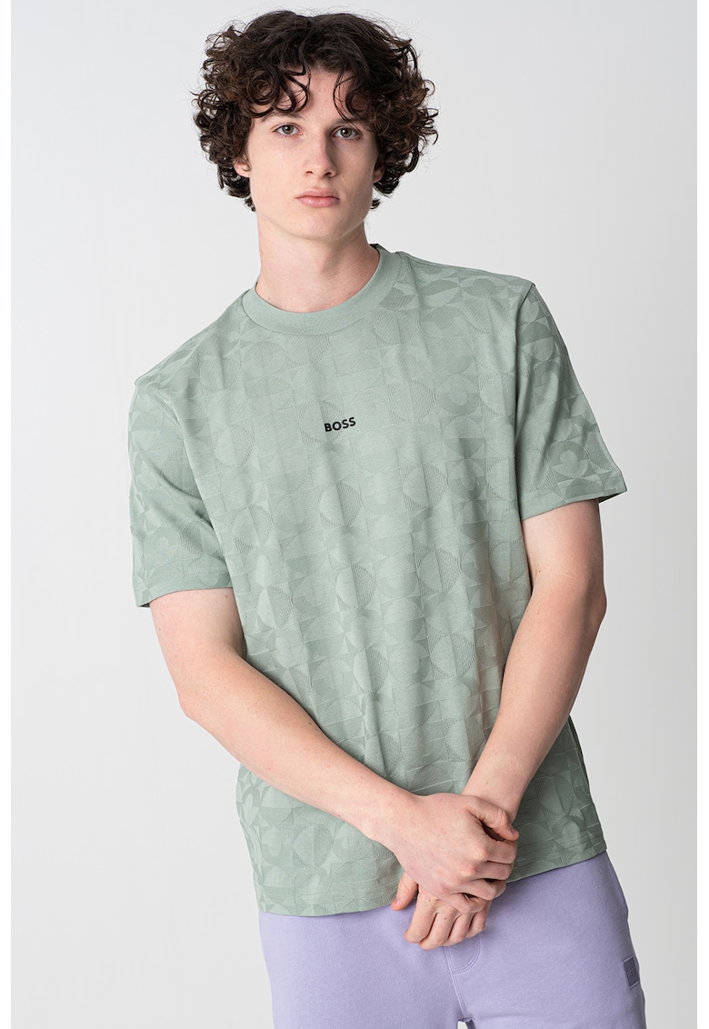 Caracteristici Culoare: verde sparanghel Imprimeu: geometric Material: bumbac Croiala: regular fit Model: decolteu la baza gatului Lungime maneca: maneca scurta Compozitie Exterior: 100% bumbac Info model Modelul poarta un produs de marimea M. Marimi model: 189 cm inaltime