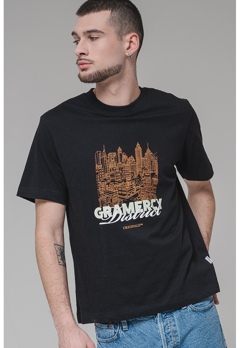 Caracteristici Culoare: negru Imprimeu: grafic Material: bumbac Croiala: regular fit Model: decolteu la baza gatului Lungime maneca: maneca medie Compozitie Exterior: 100% bumbac Info model Modelul poarta un produs de marimea M. Marimi model: 190 cm inaltime