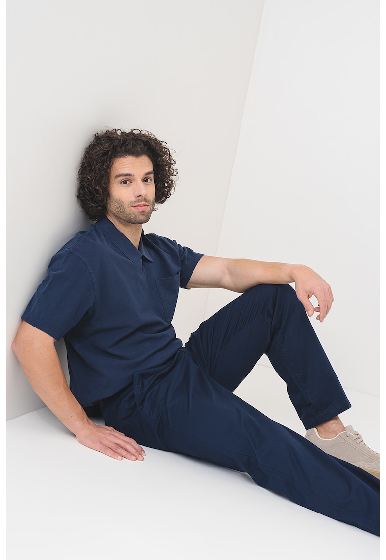 Caracteristici Culoare: bleumarin Imprimeu: uni Material: bumbac Croiala: regular fit Guler: clasic Lungime maneca: maneca scurta Compozitie Exterior: 100% bumbac Info model Modelul poarta un produs de marimea M. Marimi model: 179 cm inaltime