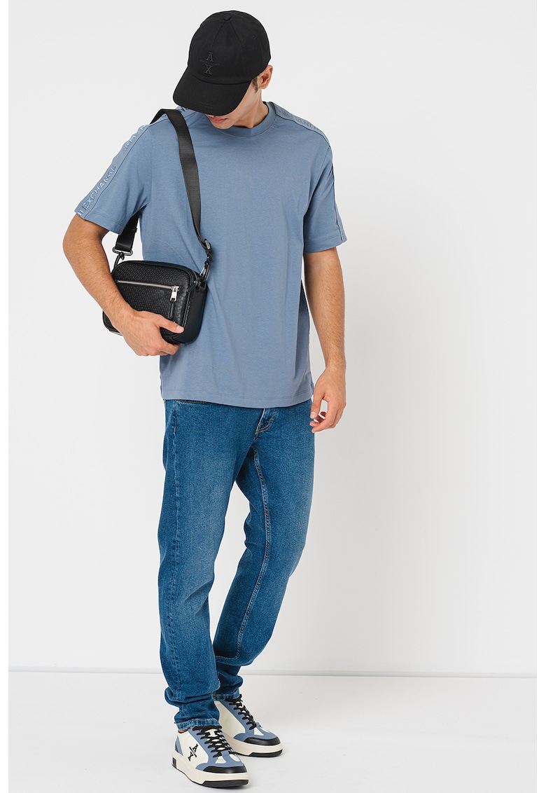Caracteristici Culoare: albastru prafuit Imprimeu: uni Material: bumbac Croiala: regular fit Model: decolteu la baza gatului Lungime maneca: maneca scurta Detalii: benzi cu logo Compozitie Exterior: 100% bumbac Info model Modelul poarta un produs de marimea M. Marimi model: 184 cm inaltime