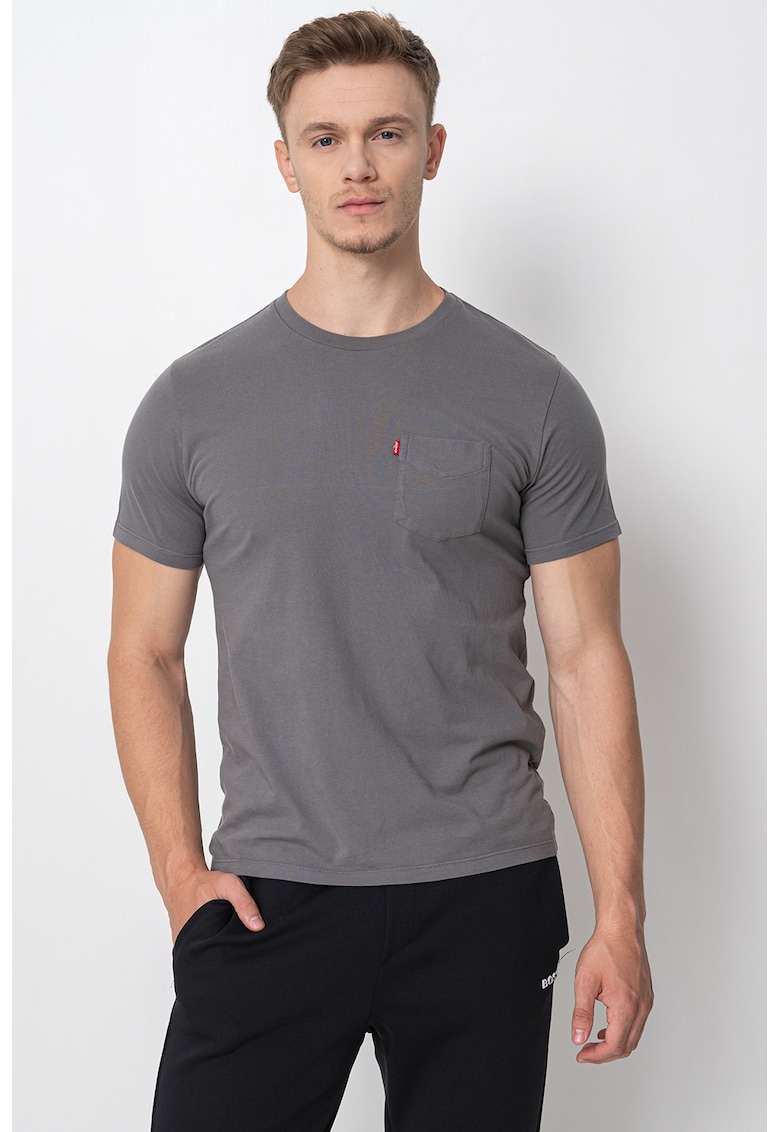 Caracteristici Culoare: gri Imprimeu: uni Material: bumbac Croiala: regular fit Model: decolteu la baza gatului Lungime maneca: maneca scurta Buzunare: unul aplicat pe piept Compozitie Exterior: 100% bumbac Info model Modelul poarta un produs de marimea M. Marimi model: 191 cm inaltime