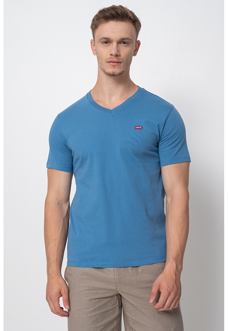 - logo Material: bumbac Croiala: regular fit Model: in v Lungime maneca: maneca scurta Compozitie Exterior: 100% bumbac Info model Modelul poarta un produs de marimea M. Marimi model: 191 cm inaltime