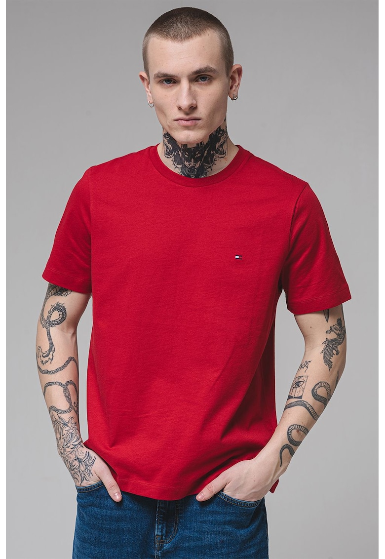 Caracteristici Culoare: rosu inchis Imprimeu: uni Material: bumbac Croiala: regular fit Model: decolteu la baza gatului Lungime maneca: maneca scurta Compozitie Exterior: 100% bumbac Info model Modelul poarta un produs de marimea M. Marimi model: 188 cm inaltime
