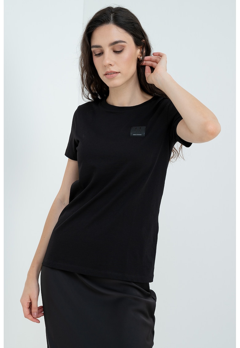 Caracteristici Culoare: negru Imprimeu: uni Material: bumbac Croiala: regular fit Model: decolteu la baza gatului Maneci: cazute Lungime maneca: maneca scurta Compozitie Exterior: 100% bumbac Info model Modelul poarta un produs de marimea S. Marimi model: 177 cm inaltime