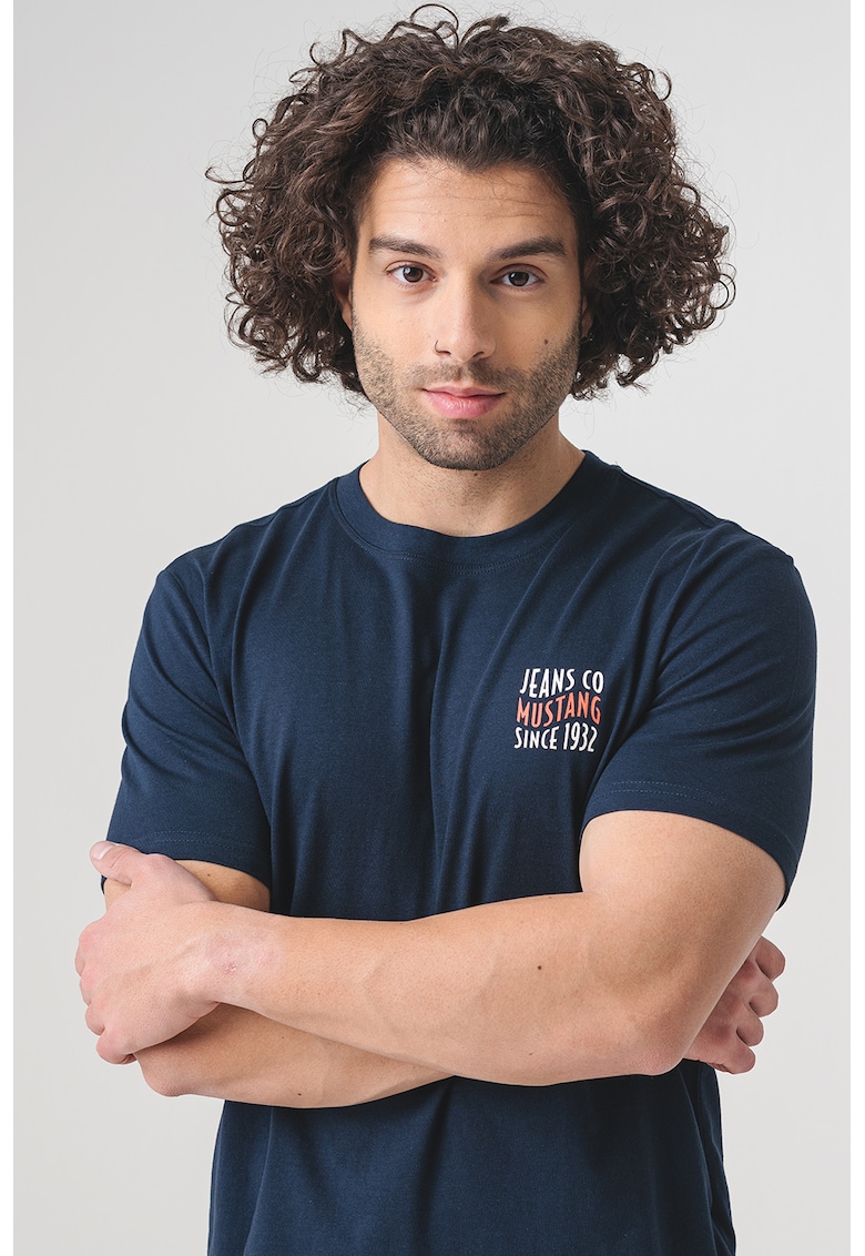 - albastru ultramarin Imprimeu: uni Material: bumbac Croiala: regular fit Model: decolteu la baza gatului Lungime maneca: maneca scurta Detalii: detaliu cu logo Compozitie Exterior: 100% bumbac Info model Modelul poarta un produs de marimea M. Marimi model: 179 cm inaltime