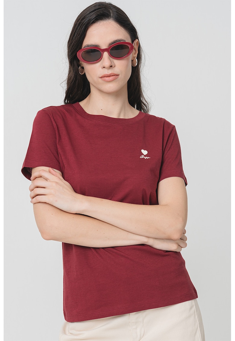 - violet pruna Imprimeu: uni Material: bumbac Croiala: regular fit Model: decolteu la baza gatului Lungime maneca: maneca scurta Compozitie Exterior: 100% bumbac Info model Modelul poarta un produs de marimea S. Marimi model: 177 cm inaltime