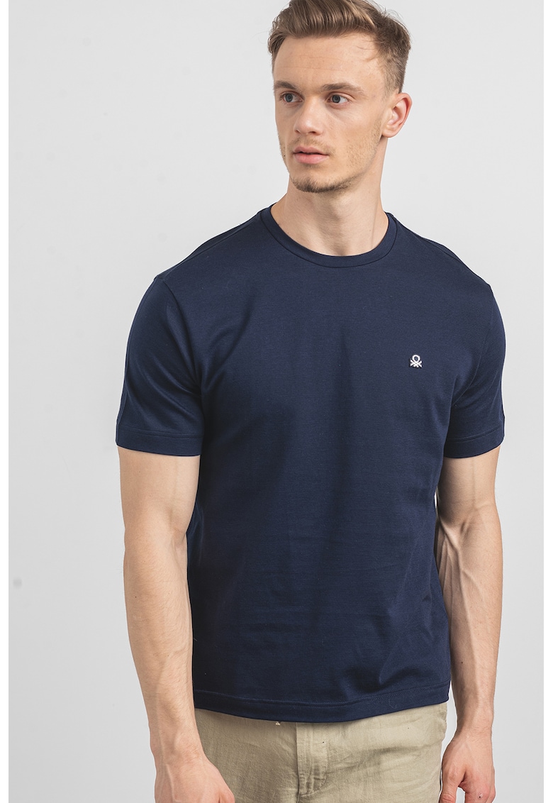 Caracteristici Culoare: bleumarin Imprimeu: uni Material: bumbac Croiala: regular fit Model: decolteu la baza gatului Lungime maneca: maneca scurta Detalii: logo discret Compozitie Exterior: 100% bumbac Info model Modelul poarta un produs de marimea S. Marimi model: 191 cm inaltime