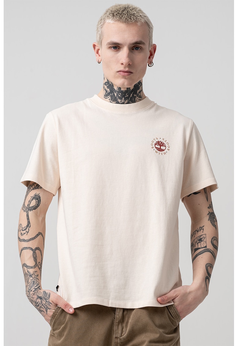 - bej Imprimeu: uni Material: bumbac Croiala: regular fit Model: decolteu la baza gatului Lungime maneca: maneca scurta Compozitie Exterior: 100% bumbac Info model Modelul poarta un produs de marimea M. Marimi model: 188 cm inaltime