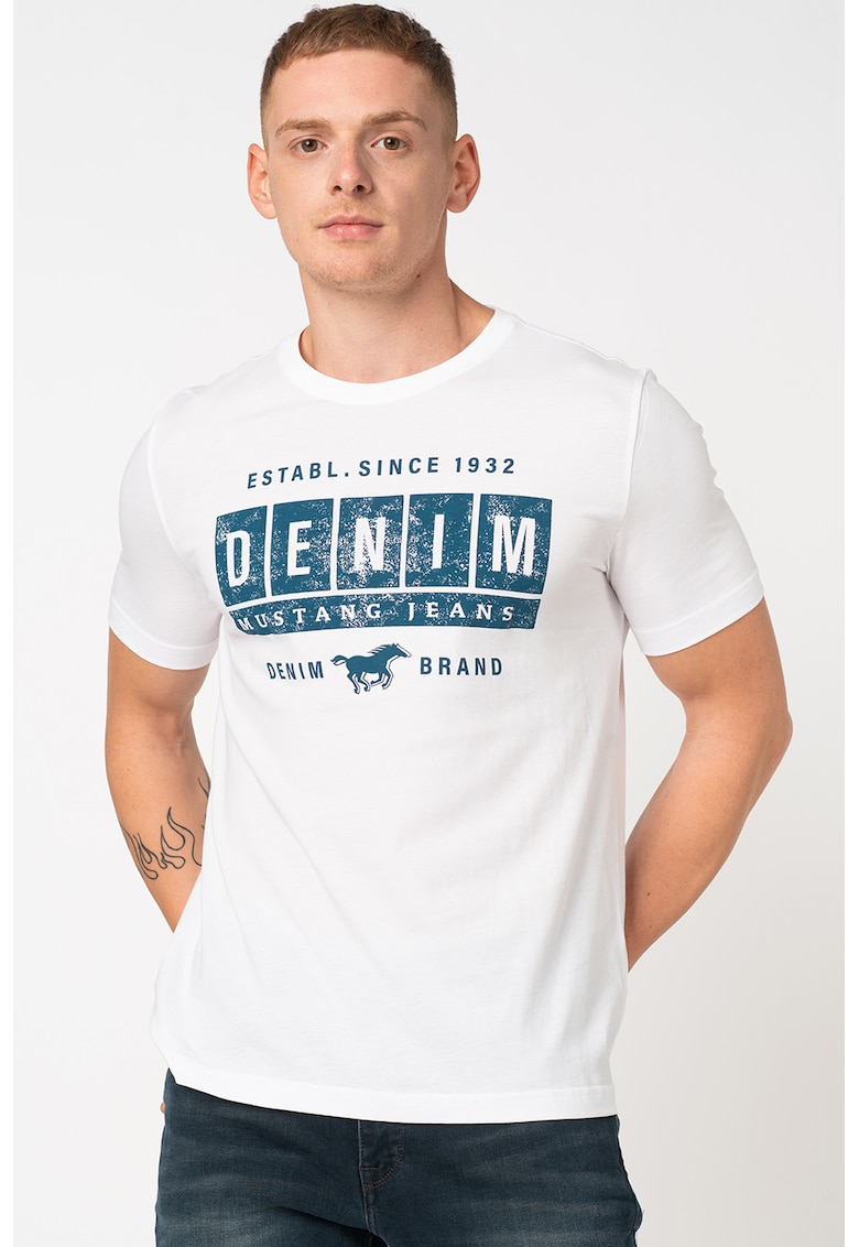 - bleumarin Imprimeu: text Material: bumbac Croiala: regular fit Model: decolteu la baza gatului Lungime maneca: maneca scurta Compozitie Exterior: 100% bumbac Info model Modelul poarta un produs de marimea M. Marimi model: 186 cm inaltime