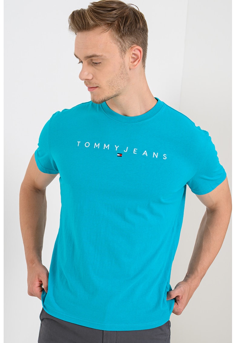 Caracteristici Culoare: albastru Imprimeu: logo Material: bumbac Croiala: regular fit Model: decolteu la baza gatului Lungime maneca: maneca scurta Compozitie Exterior: 100% bumbac regenerativ Info model Modelul poarta un produs de marimea M. Marimi model: 191 cm inaltime