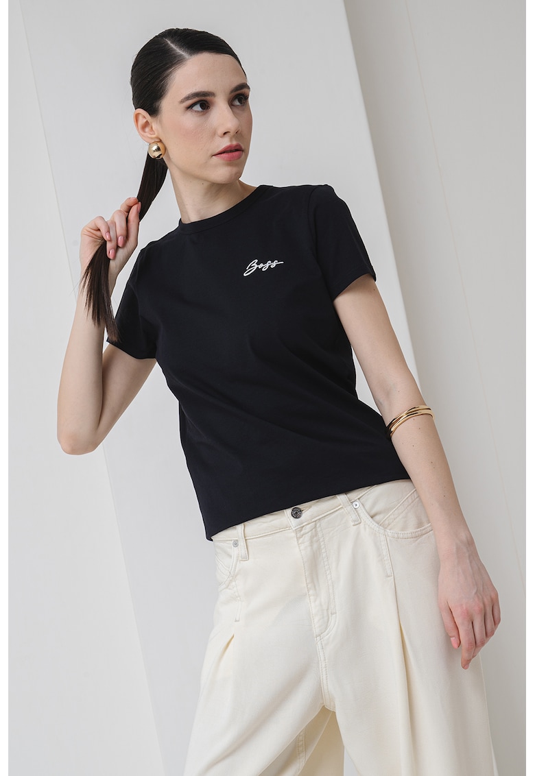 - bej Imprimeu: uni Material: bumbac Croiala: regular fit Model: decolteu la baza gatului Lungime maneca: maneca scurta Detalii: aplicatie discreta cu logo Compozitie Exterior: 100% bumbac Info model Modelul poarta un produs de marimea S. Marimi model: 177 cm inaltime