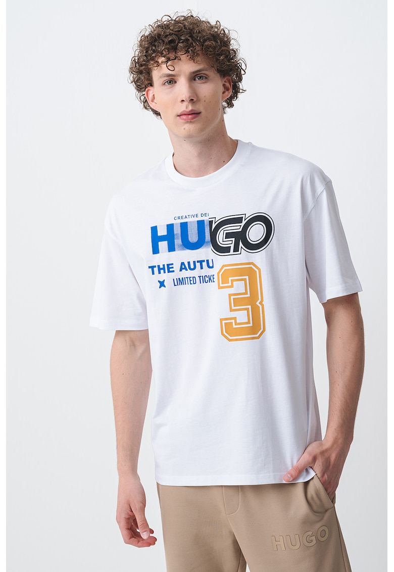 - albastru royal Imprimeu: logo Material: bumbac Croiala: regular fit Model: decolteu la baza gatului Lungime maneca: maneca scurta Compozitie Exterior: 100% bumbac Info model Modelul poarta un produs de marimea M. Marimi model: 190 cm inaltime