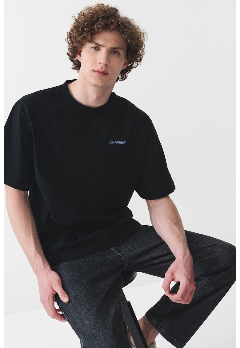 - negru Imprimeu: logo Material: bumbac Croiala: regular fit Model: decolteu la baza gatului Maneci: cazute Lungime maneca: maneca scurta Compozitie Exterior: 100% bumbac Info model Modelul poarta un produs de marimea M. Marimi model: 190 cm inaltime