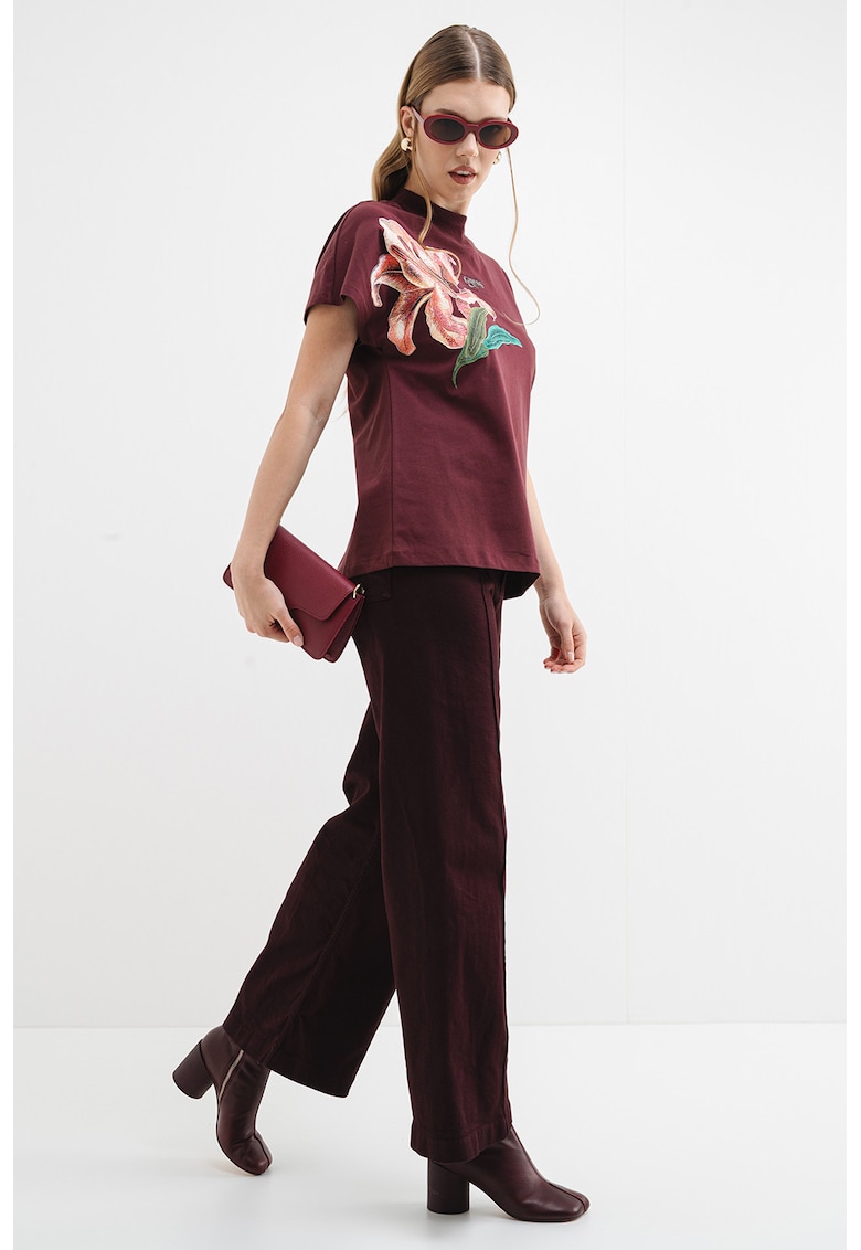 - roz Imprimeu: floral Material: bumbac Croiala: regular fit Model: decolteu la baza gatului Lungime maneca: maneca scurta Compozitie Exterior: 100% bumbac Info model Modelul poarta un produs de marimea S. Marimi model: 176 cm inaltime