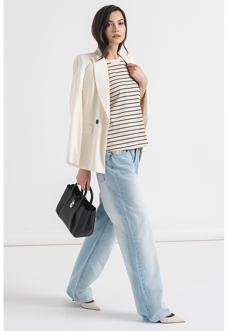 - crem Imprimeu: dungi Material: bumbac Croiala: regular fit Model: decolteu la baza gatului Lungime maneca: maneca scurta Compozitie Exterior: 100% bumbac Info model Modelul poarta un produs de marimea S. Marimi model: 176 cm inaltime