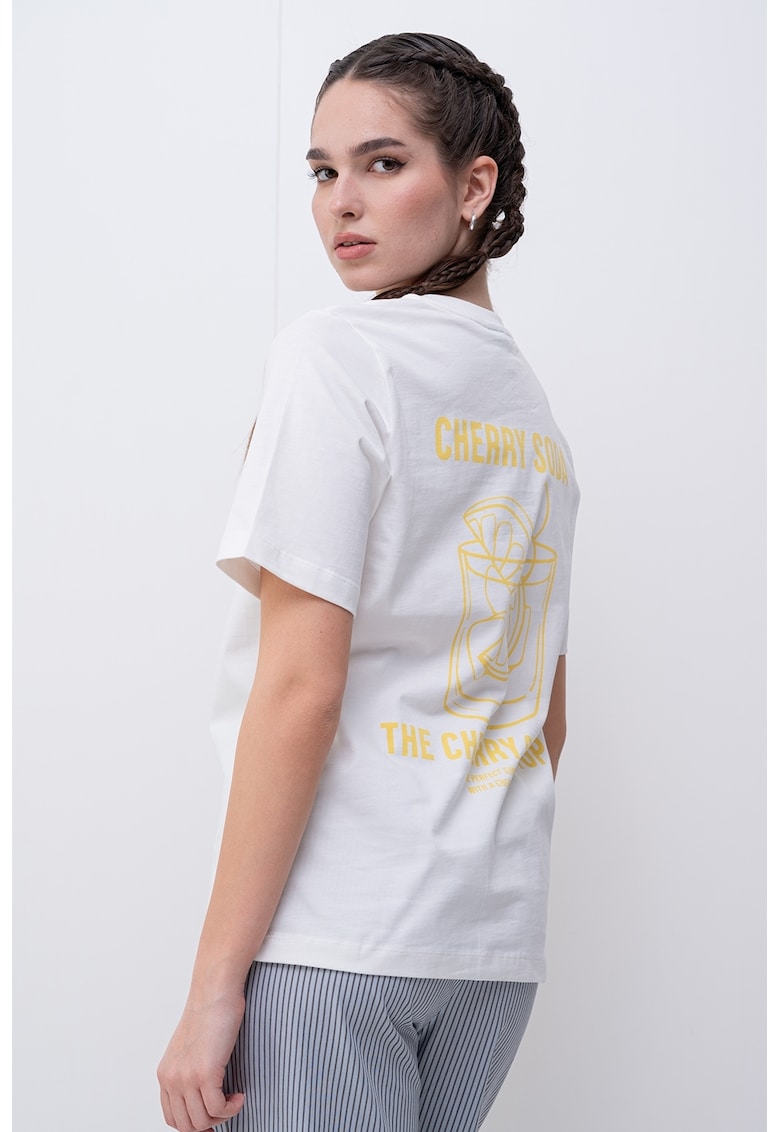 - galben Imprimeu: grafic Material: bumbac organic Croiala: regular fit Model: decolteu la baza gatului Lungime maneca: maneca medie Compozitie Exterior: 100% bumbac organic Info model Modelul poarta un produs de marimea S. Marimi model: 176 cm inaltime