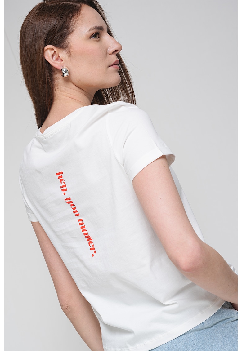 - rosu vermillion Imprimeu: text Material: bumbac Croiala: regular fit Model: decolteu la baza gatului Lungime maneca: maneca scurta Compozitie Exterior: 100% bumbac Info model Modelul poarta un produs de marimea S. Marimi model: 180 cm inaltime