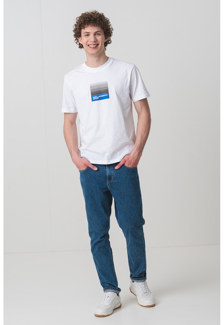 - alb optic Imprimeu: logo Material: bumbac organic Croiala: regular fit Model: decolteu la baza gatului Lungime maneca: maneca scurta Compozitie Exterior: 100% bumbac organic Info model Modelul poarta un produs de marimea M. Marimi model: 190 cm inaltime