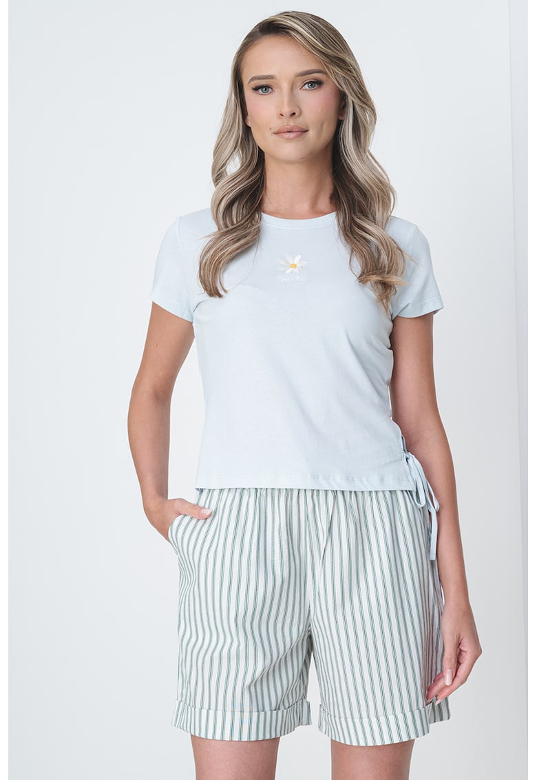 Caracteristici Culoare: albastru glaciar Imprimeu: uni Material: bumbac organic Croiala: regular fit Model: decolteu la baza gatului Lungime maneca: maneca scurta Compozitie Exterior: 100% bumbac organic Info model Modelul poarta un produs de marimea S. Marimi model: 174 cm inaltime