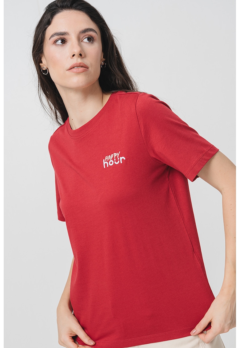 Caracteristici Culoare: rosu inchis Imprimeu: uni Material: bumbac organic Croiala: regular fit Model: decolteu la baza gatului Lungime maneca: maneca scurta Compozitie Exterior: 100% bumbac organic Info model Modelul poarta un produs de marimea S. Marimi model: 177 cm inaltime