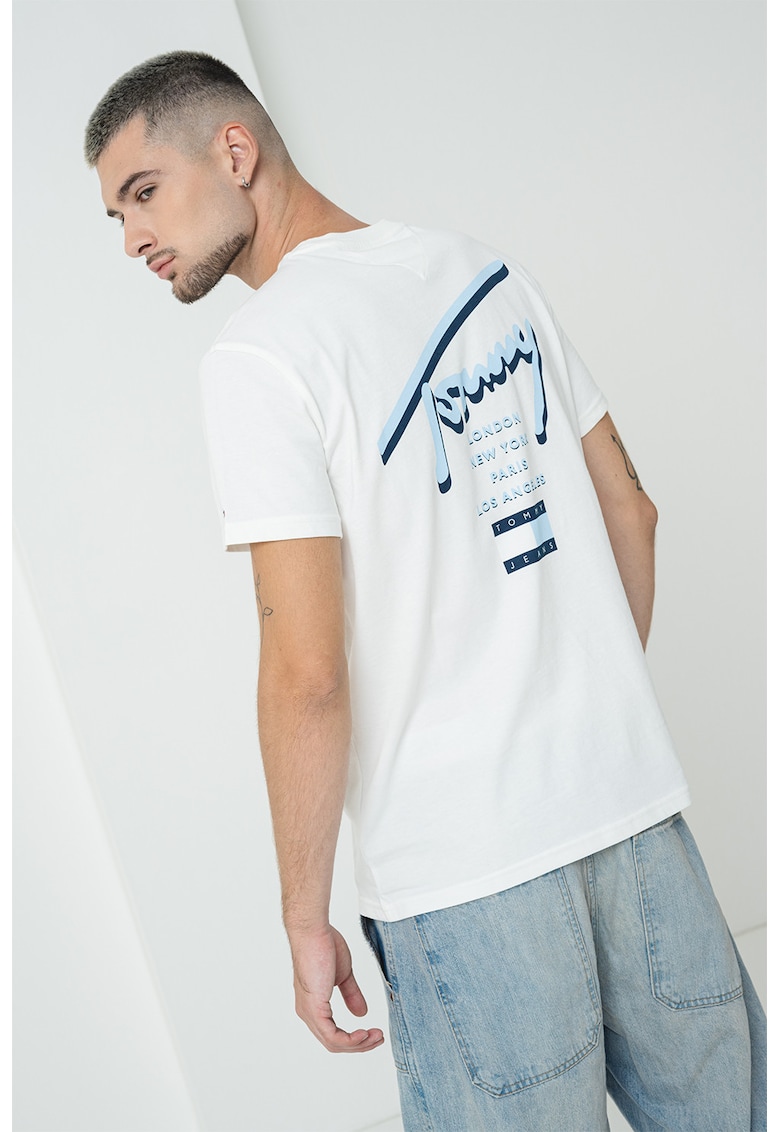 - albastru Imprimeu: logo Material: bumbac Croiala: regular fit Model: decolteu la baza gatului Lungime maneca: maneca scurta Compozitie Exterior: 100% bumbac Info model Modelul poarta un produs de marimea M. Marimi model: 190 cm inaltime