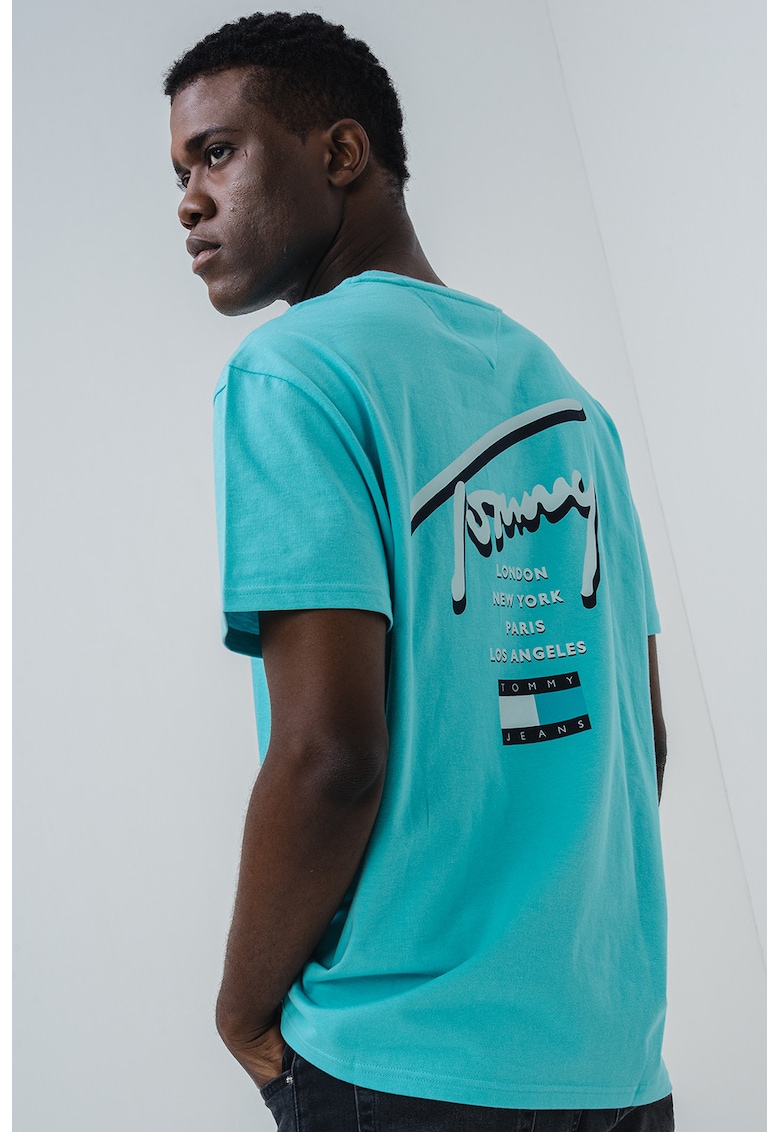 Caracteristici Culoare: turcoaz Imprimeu: logo Material: bumbac Croiala: regular fit Model: decolteu la baza gatului Lungime maneca: maneca scurta Compozitie Exterior: 100% bumbac Info model Modelul poarta un produs de marimea XL. Marimi model: 184 cm inaltime