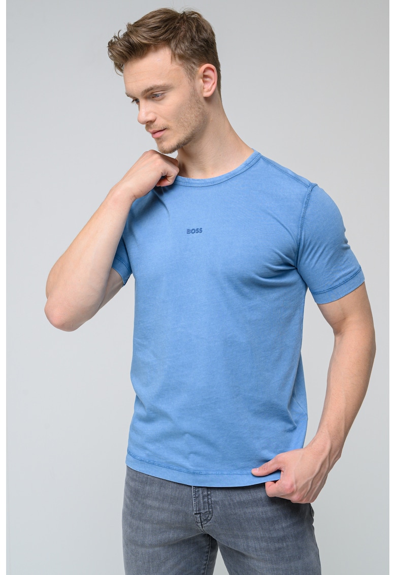 Caracteristici Culoare: albastru Imprimeu: logo Material: bumbac Croiala: regular fit Model: decolteu la baza gatului Lungime maneca: maneca scurta Compozitie Exterior: 100% bumbac Info model Modelul poarta un produs de marimea M. Marimi model: 191 cm inaltime
