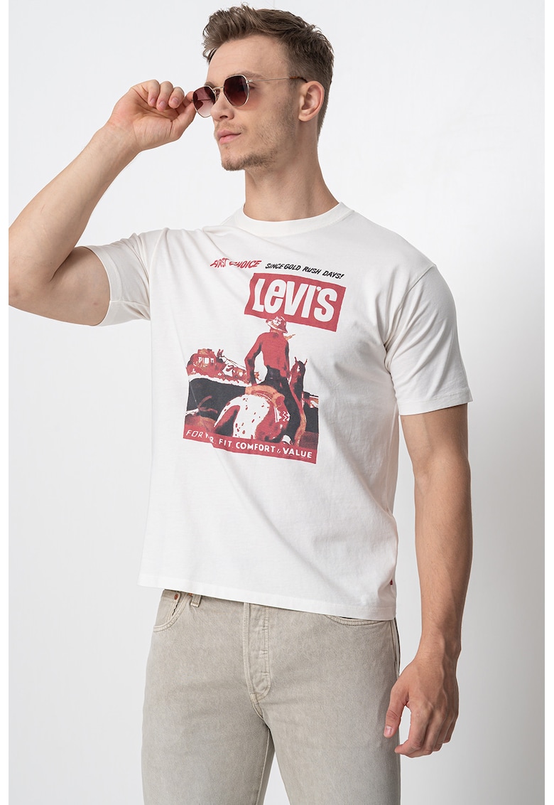 Caracteristici Culoare: alb fildes Imprimeu: logo Material: bumbac Croiala: regular fit Model: decolteu la baza gatului Lungime maneca: maneca scurta Compozitie Exterior: 100% bumbac Info model Modelul poarta un produs de marimea M. Marimi model: 191 cm inaltime