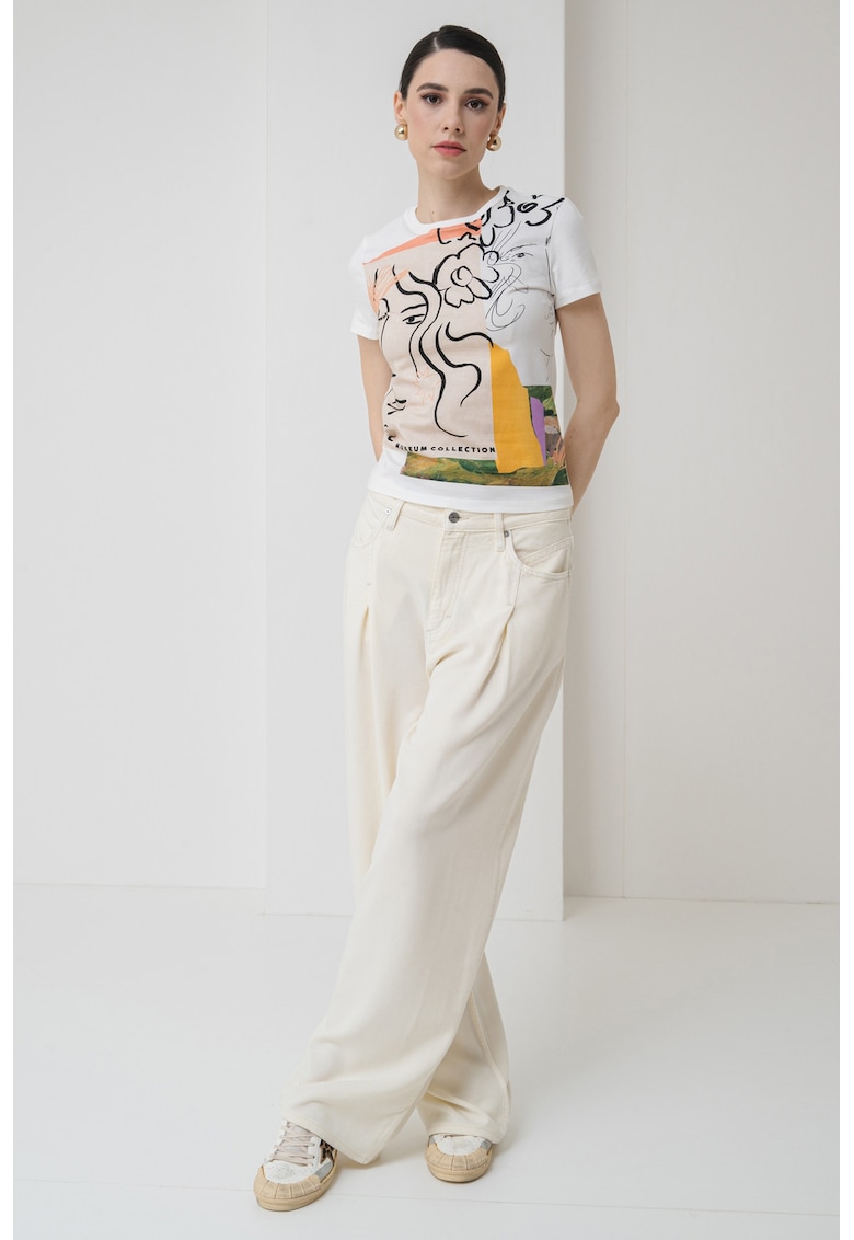 - galben Imprimeu: grafic Material: bumbac Croiala: slim fit Model: decolteu la baza gatului Lungime maneca: maneca scurta Compozitie Exterior: 91% bumbac