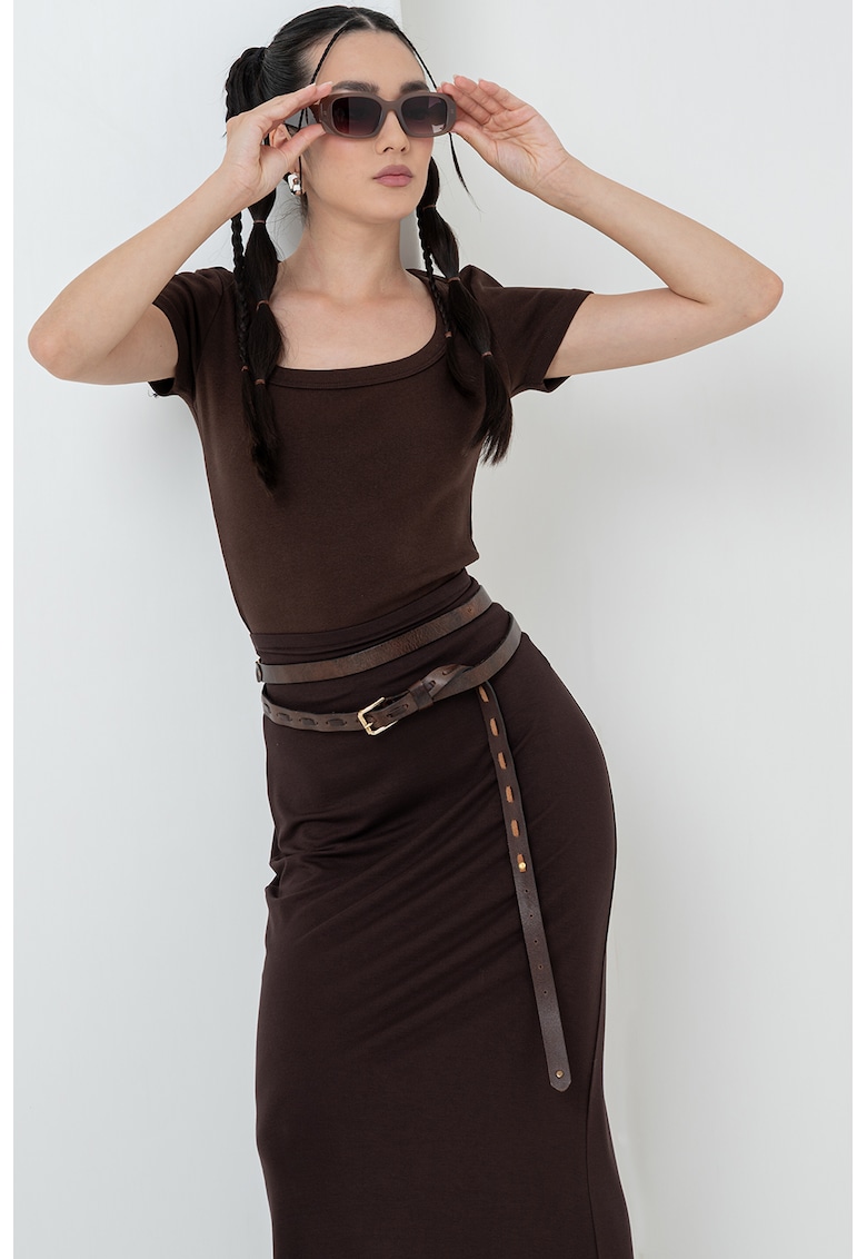 Caracteristici Culoare: maro inchis Imprimeu: uni Material: bumbac organic Croiala: slim fit Model: rotund Lungime maneca: maneca scurta Compozitie Exterior: 95% bumbac organic