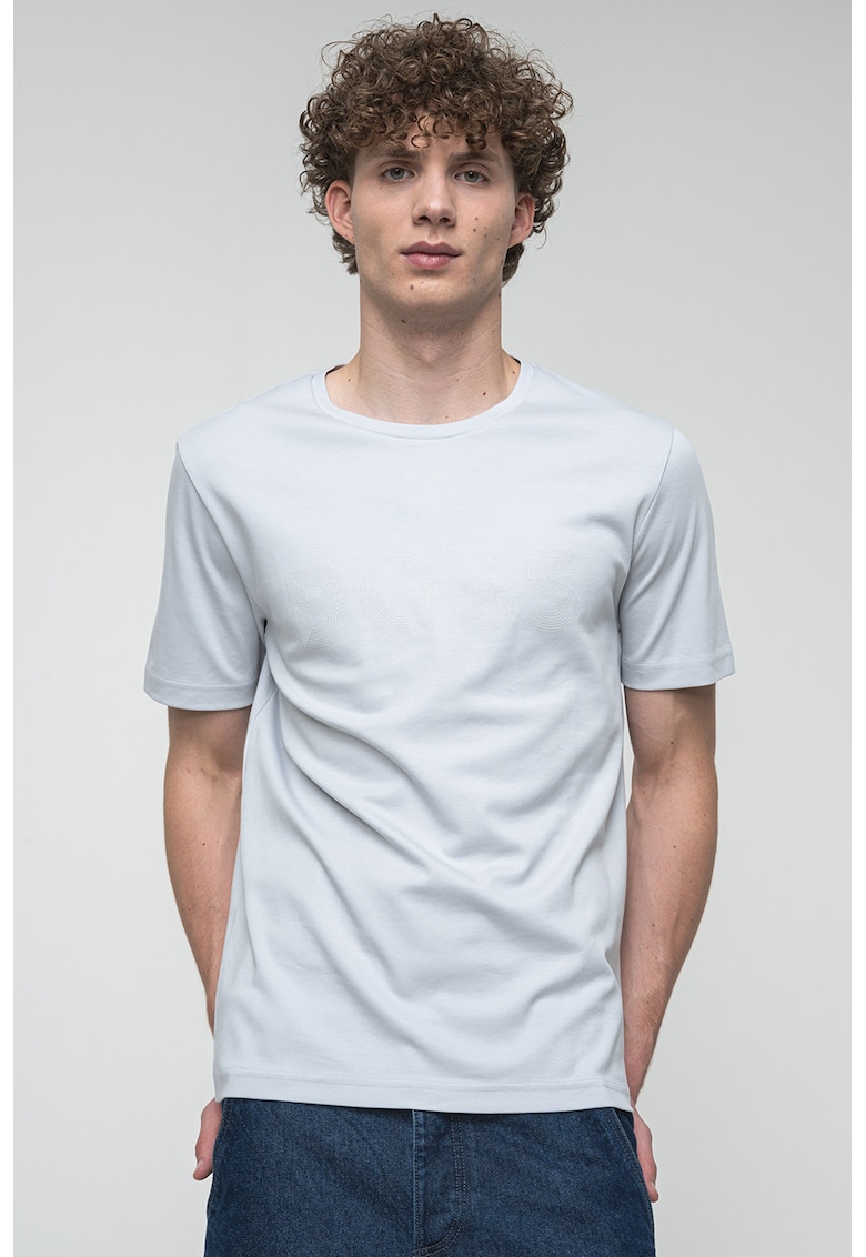 Caracteristici Culoare: gri deschis Imprimeu: uni Material: bumbac Croiala: regular fit Model: decolteu la baza gatului Lungime maneca: maneca scurta Compozitie Exterior: 100% bumbac Info model Modelul poarta un produs de marimea M. Marimi model: 190 cm inaltime