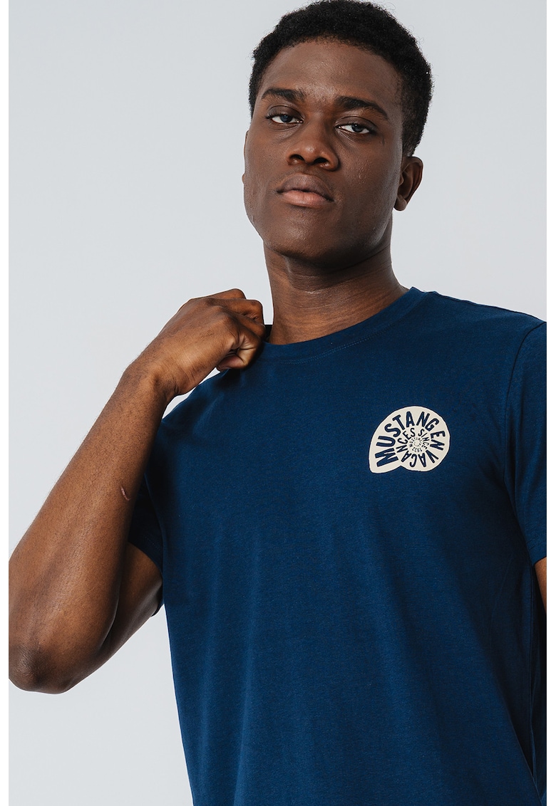 - bleumarin Imprimeu: uni Material: bumbac Croiala: regular fit Model: decolteu la baza gatului Lungime maneca: maneca scurta Compozitie Exterior: 100% bumbac Info model Modelul poarta un produs de marimea M. Marimi model: 184 cm inaltime