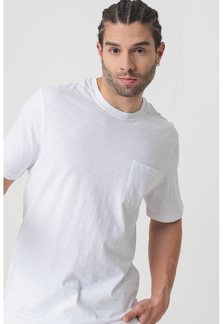 Caracteristici Culoare: alb Imprimeu: uni Material: bumbac Croiala: regular fit Model: decolteu la baza gatului Lungime maneca: maneca scurta Compozitie Exterior: 100% bumbac Info model Modelul poarta un produs de marimea M. Marimi model: 179 cm inaltime