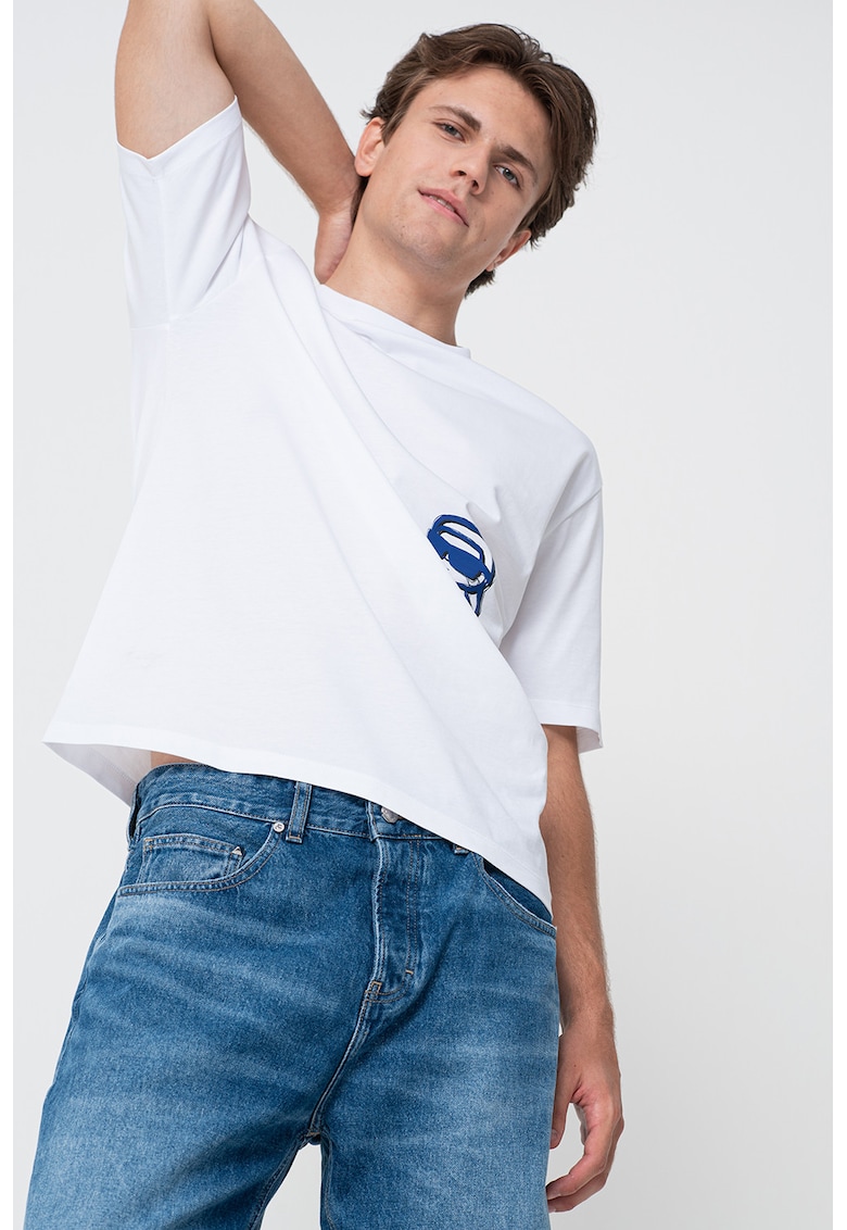 - alb murdar Imprimeu: logo Material: bumbac Croiala: regular fit Model: decolteu la baza gatului Lungime maneca: maneca scurta Compozitie Exterior: 100% bumbac Info model Modelul poarta un produs de marimea M. Marimi model: 188 cm inaltime