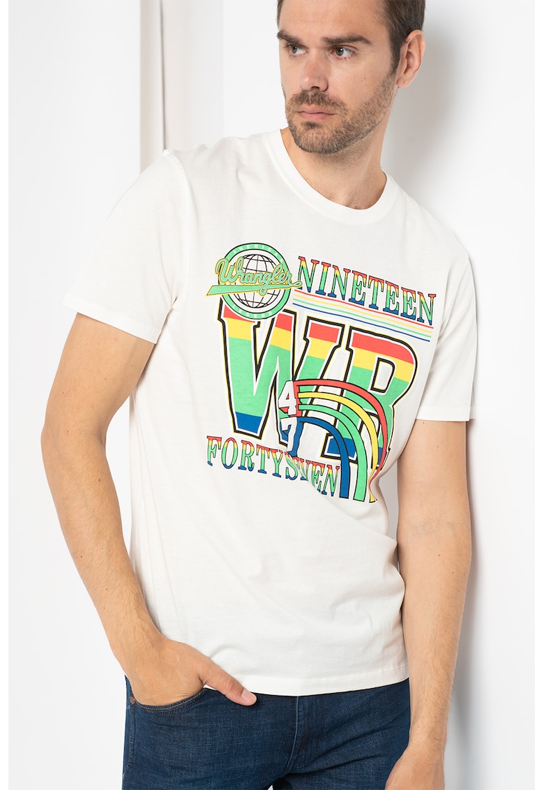 - text Material: bumbac Croiala: regular fit Model: decolteu la baza gatului Lungime maneca: maneca scurta Detalii: imprimeu logo supradimensionat Compozitie Exterior: 100% bumbac Info model Modelul poarta un produs de marimea M. Marimi model: 195 cm inaltime
